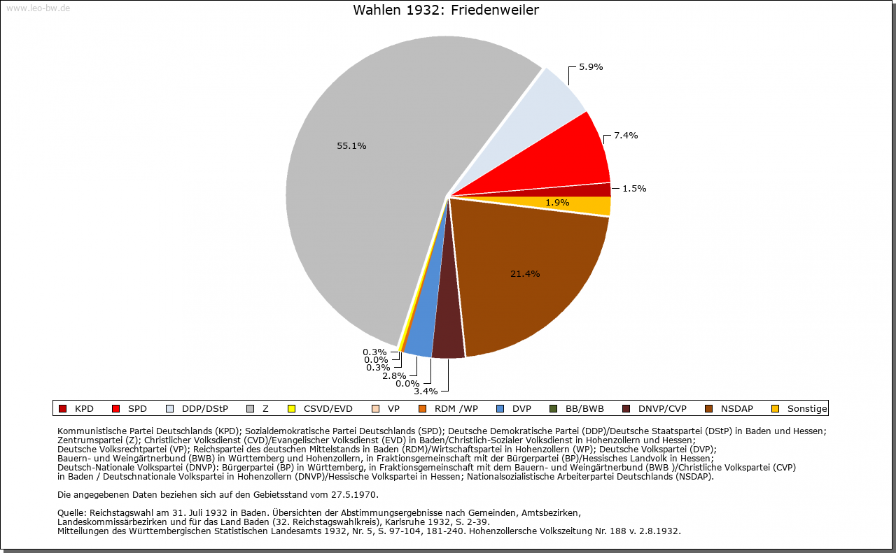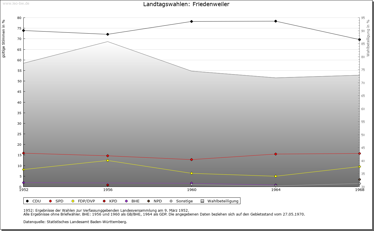 | Geschichte: | 1123 Fridenwilare. In diesem Jahr tauschte der Abt von St. Georgen mit Kloster Reichenau Besitzungen in Döggingen und Hausen vor Wald (Bräunungen, Verwaltungsraum Donaueschingen und Hüfingen, Verwaltungsraum Donaueschingen) gegen Güter in Friedenweiler und Löffingen. Diese Erwerbung nutzte Kloster St. Georgen bald darauf zur Gründung einer klösterlichen Niederlassung am Rand der alten Marken Bräunungen und Löffingen. Ziel war wohl der Landesausbau des südöstlich Schwarzwaldes. Friedenweiler, 1139 erstmals als Zelle bezeichnet, wurde mit Benediktinerinnen des sanktgeorgischen Tochterklosters Amtenhausen besetzt. In der Anfangszeit übte der Abt von St. Georgen neben der geistlichen Aufsicht auch wirtschaftliche Funktionen aus. Die Vogteirechte über das Klostergut gelangten 1218 mit dem Zähringererbe an die Grafen von Fürstenberg, die den Einfluß des Abtes allmählich zurückdrängten. Die Blütezeit des Klosters reichte bis ins 14. Jahrhundert. Die Benediktinerinnen erfuhren in dieser Zeit durch die Fürstenberger stärkste Förderung, da jeder Besitzerwerb deren landesherrliche Rechte steigerte. Erst nach Abschluß des Landesausbaus verloren die Klostervögte ihr Interesse an Friedenweiler. Der Besitz des Klosters erstreckte sich auf die unmittelbare Umgebung im Waldgebiet, auf die westliche Baar und weniger bedeutend auch in den Breisgau. Als um die Mitte des 16. Jahrhundert der Konvent der Benediktinerinnen ausgestorben war, möglicherweise zum Teil durch die Reformation bedingt, zog Fürstenberg die klösterlichen Güter nicht ein, sondern überließ das Kloster Zisterzienserinnen aus Lichtental (Stadtkreis Baden-Baden). Seit 1576 stand Friedenweiler unter Aufsicht des Abtes von Tennenbach. Fürstenbergisches Amt Vöhrenbach. 1802 wurde das Kloster aufgehoben und kam mit seinem Besitz an Baden. 1807 Bezirksamt/Landkreis Neustadt. 1973 Landkreis Breisgau-Hochschwarzwald. |