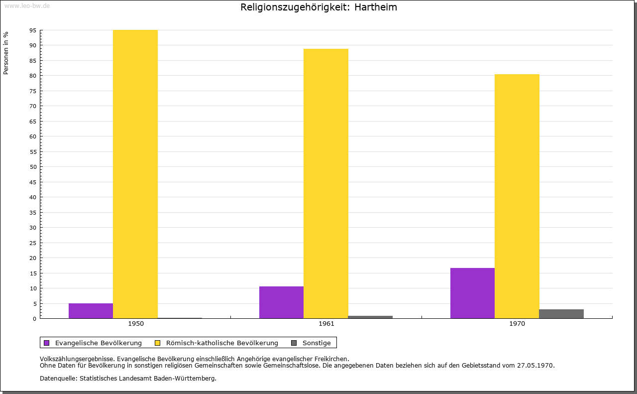 | Kirche und Schule: | Die gewiß viel ältere St. Peterskirche in Hartheim, Filialkirche von St. Martin in Feldkirch, 1327 erstmals erwähnt. Das Patronat hatten als Lehen von den Herren von Staufen zunächst die von Krotzingen, danach die Herren von Wessenberg zu Feldkirch. Seit 1905 (1910) selbständige Pfarrei, vorher ab 1834 Lokalkaplanei. Das mittelalterliche Kirchengebäude gegen 1740 durch einen Neubau ersetzt, nach 1872 zum Rathaus umgebaut, 1969 abgebrochen. Neue, größere Kirche St. Peter und Paul von 1872. Kapelle »im Grün« (Grien) in der Rheinniederung. Die Evangelischen gehörten zur Pfarrei Mengen (Verwaltungsraum Schallstadt-Wolfenweiler). |