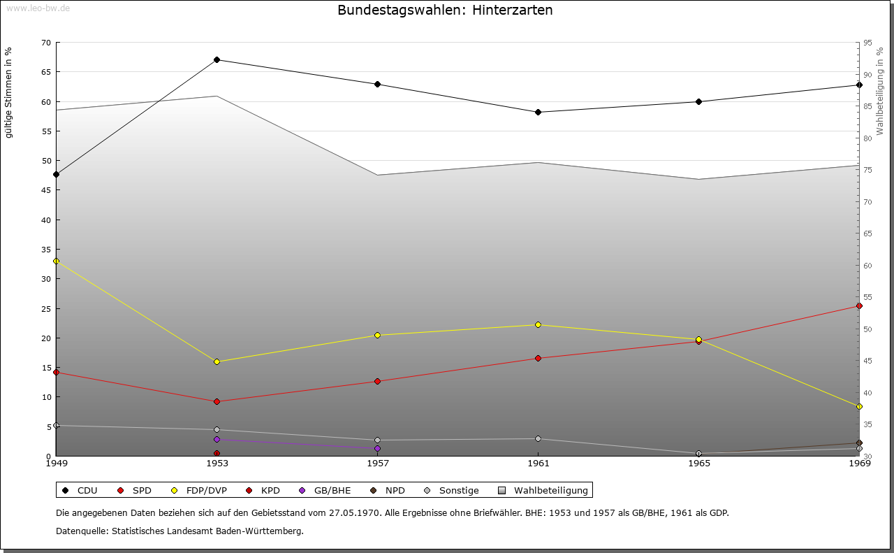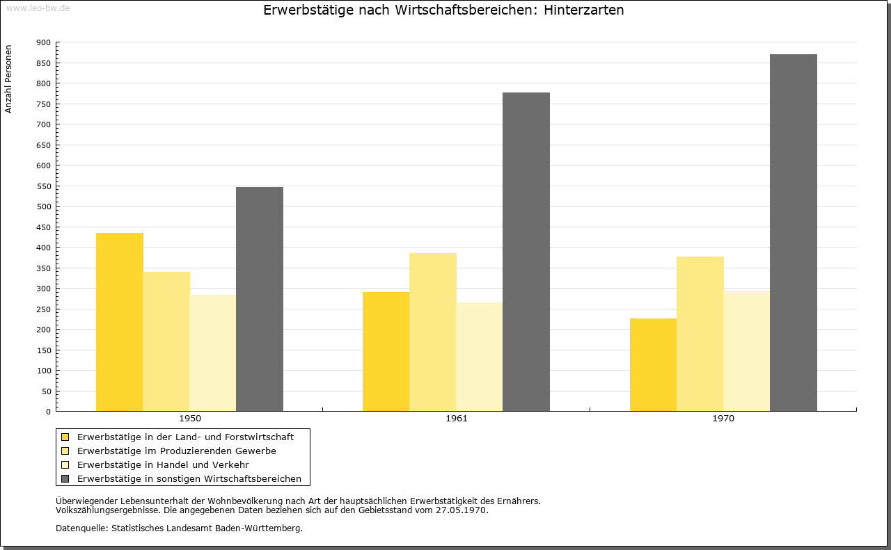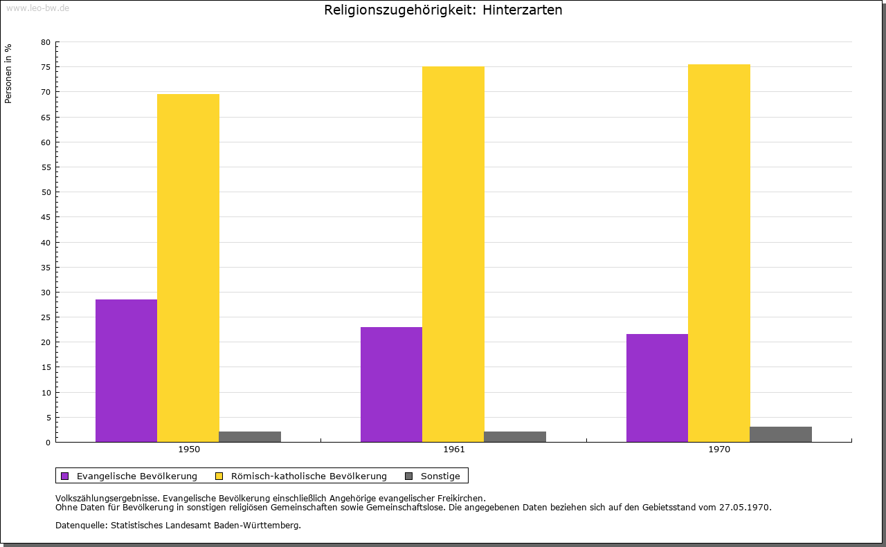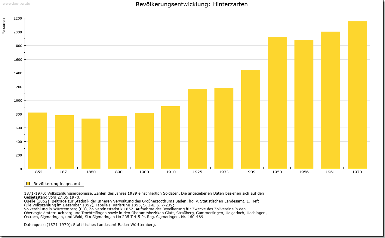 | Geschichte: | In einer Urkunde für das Kloster St. Peter zwischen 1122 und 1132 wird ein Gut apud villam Zartun mit der Hälfte eines Sees am Feldberg, also offenbar des Titisees (oder des Feldsees?) zusammen genannt. Es scheint hier die Spur zu sein, durch welche sich das Wandern des Zartennamens von der alten Mark hinauf ins Feldberggebiet erklärt: der dort sog. »Zartenbach« vermittelte der späteren Siedlung mit der Kirche den Namen in der Zarten (1350); die Vogtei hieß Hinter der Straß in der Zarten (1525, 1554), woraus sich später durch Zusammenfügung der Name Hinterzarten, 1708 erstmals nachzuweisen, entwickelte. Um 1750 war der alte Name »Hinterstraß« durch den neuen verdrängt. Die frühest nachweisbaren Besitzer auf der späteren Gemarkung dürften die Herren von Weiler im Dreisamtal gewesen sein. Verwandt mit ihnen waren die Herren von Falkenstein, beides zähringische Ministerialen. Auf diesem Wege kam das Gebiet von Hinterzarten in den Besitz der Falkensteiner, bis diese 1408 ihre Vogtei »Hinterstraß« in der Gant an die Schnewlin von Landeck verkauften. Durch eine Erbtochter kam diese 1588 an Friedrich von Sickingen-Hohenburg. Die mindestens seit 1408 bestehende österreichische Landeshoheit endete 1806 mit dem Übergang an Baden, dem auch die sickingischen Grundherrschaftsrechte 1808 durch Verkauf zufielen. Bis 1864 gehörte Hinterzarten zum Bezirksamt Freiburg, seitdem zum Вezirksamt Neustadt. Im 17./18. Jahrhundert hausgewerbliche Tätigkeit und Glasträger, seit ca. 1660 Uhrmacher (»Jockelesuhren«) und Strohschuhflechterei. Mit dem Rückgang der Uhrenherstellung Anfang des 18. Jahrhunderts Aufschwung der Löffelmacherei mit Ausfuhr in die Schweiz, Elsaß und Württemberg. Rückgang seit ca. 1860, Erlöschen um 1900. |