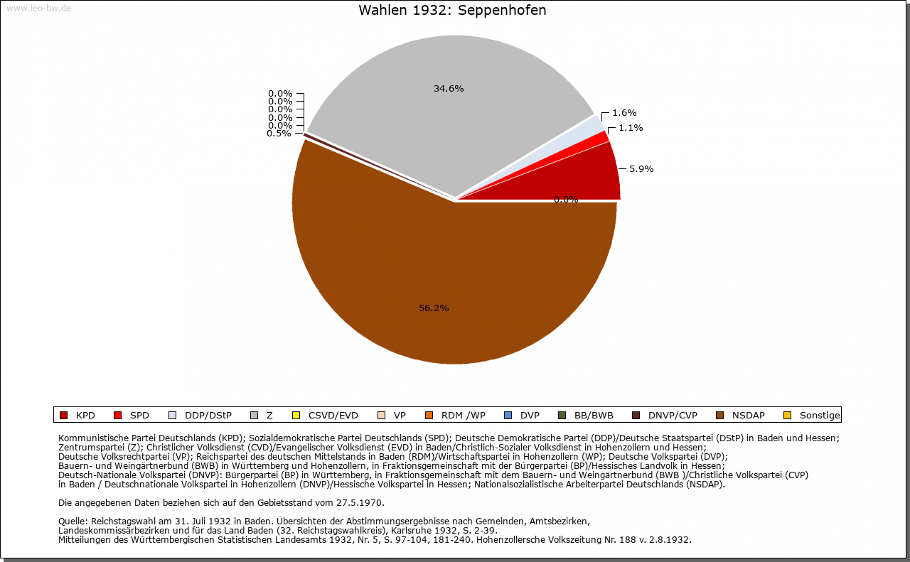| Geschichte: | 1122 Seppinhovin, Hofen und Personenname. Funde aus zwei merowingerzeitlichen Gräbern, Fundstelle nicht bekannt. Frühe Ausbausiedlung von Löffingen. 1122 war Biccho von Seppenhofen Zeuge bei einem Vergleich zwischen Kloster Allerheiligen und dessen Vogt Adelbert von Mörsberg. Örtliche Adelsfamilie von 1122 bis 1272 bezeugt, ursprünglich vielleicht zähringische Ministeriale. 1345 verkaufte Johann von Reischach seinen ganzen, von Fürstenberg zu Lehen gehenden Besitz in Seppenhofen an Kloster Friedenweiler. Die Grafen verzichteten auf die Lehenshoheit, erhielten dabei vermutlich die Vogteirechte über Seppenhofen. Bis 1806 fürstenbergisches Obervogteiamt Löffingen, dann badisch. 1821 vom aufgelösten Amt Löffingen zum Bezirksamt/Landkreis Neustadt. 1973 Landkreis Breisgau-Hochschwarzwald. Kirchlich stets Filialkirche von Löffingen. Katholische Filialkirche St. Bartholomäus 1808/12 erbaut, barock. 1905 erweitert. Evangelische zur Pfarrei Löffingen. |