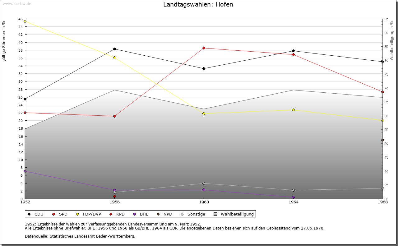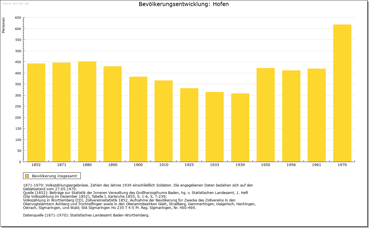 | Geschichte: | 844 (Kopialüberlieferung 12. Jahrhundert) Hofoherm (Personenname). Siedlung der Merowingerzeit. Mit einer einzelnen Schenkung an Lorsch erwähnt. Nach Hofen nannten sich im 14. Jahrhundert zeitweise Angehörige eines auch in Besigheim und Löchgau nachweisbaren Adelsgeschlechts. Der Ort gehörte im 15. Jahrhundert den Ganerben von Bönnigheim. Württemberg erwarb ihn teils durch Kauf, teils durch Tausch zwischen 1575 und 1584 (ein Viertel 1575 von den von Liebenstein, zwei Viertel 1579/82 von den von Neipperg, das letzte Viertel 1584 von den von Urbach). Das im 30jährigen Krieg mehrere Jahre (1641/43) unbewohnte Dorf kam 1808 vom Oberamt Brackenheim zum Oberamt Besigheim, 1938 zum Landkreis Ludwigsburg. |