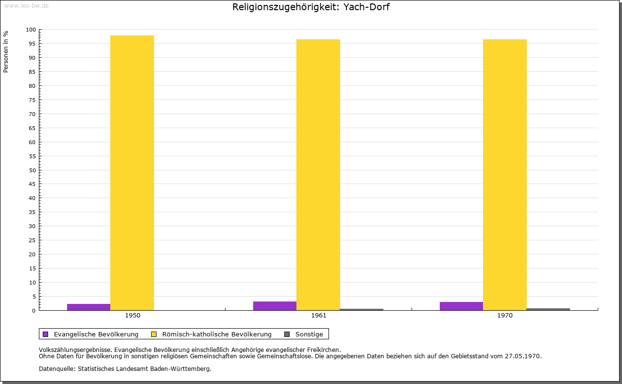 | Geschichte: | 14. Jahrhundert in der Ya, 1480 Ygach, 1511 Yach. Siedlung der hochmittelalterlichen Rodung. Yach war Mittelpunkt eines Meiertums des Klosters Waldkirch. Als der Ort 1567 mit der Herrschaft Schwarzenberg an Osterreich verkauft wurde, waren mit einem Teil die Hübschmann von Biederbach, mit dem anderen die von Kippenheim belehnt. Von der Landgrafschaft Breisgau kam Yach 1805 an Baden. 1807 zum Oberamt Waldkirch, 1813 zum Bezirksamt Elzach, 1819 zum Bezirksamt Waldkirch, 1936 zum Bezirksamt (Landkreis) Emmendingen. 1974 Eingemeindung nach Elzach. |